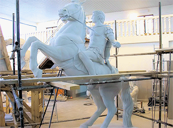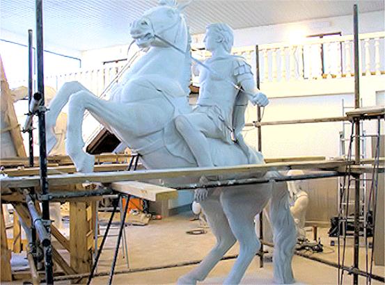 επεξεργασία του αγάλματος του έφιππου Αλεξάνδρου επάνω στο Βουκεφάλα,