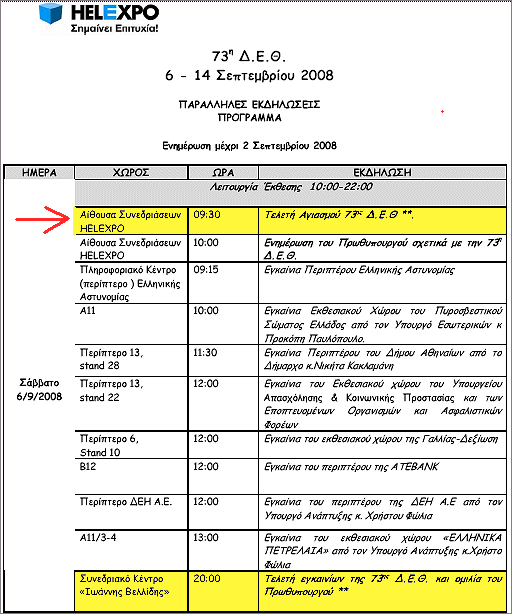 7/9/2008 μ.Χ. ΜΕΤΕΦΕΡΑΝ ΤΟΝ ΑΓΙΑΣΜΟ ΤΟ ΠΡΩΙ, ΓΙΑ ΝΑ ΜΗΝ ΑΚΟΥΣΤΕΙ ΔΥΝΑΤΗ ΠΡΑΞΙΚΟΠΗΜΑ ΚΑΤΑ ΑΝΘΙΜΟΥ ΣΤΗ ΔΕΘ ΔΕΙΤΕ ΤΙ ΕΙΧΕ ΠΕΙ ΤΟ 2005 ΣΤΗΝ 70η