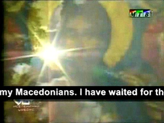 και πάλι τον «Χριστό» να προαναγγέλλει πως «τώρα έρχεται στη “Μακεδονία”»,